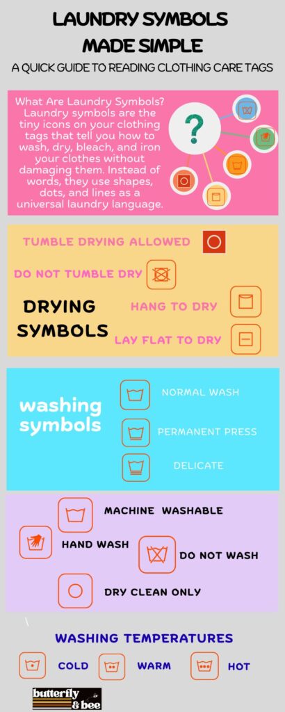 Keeping this chart on your phone, printed and hung near your washer, or saved on Pinterest makes it simple to double-check before you wash. Over time, you’ll start to recognize the icons automatically, and laundry day will feel a lot less like guesswork.