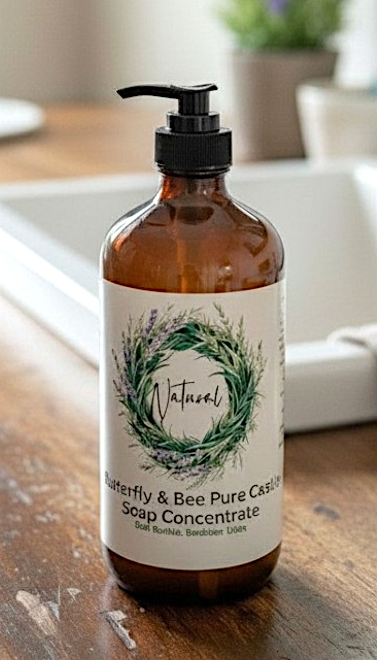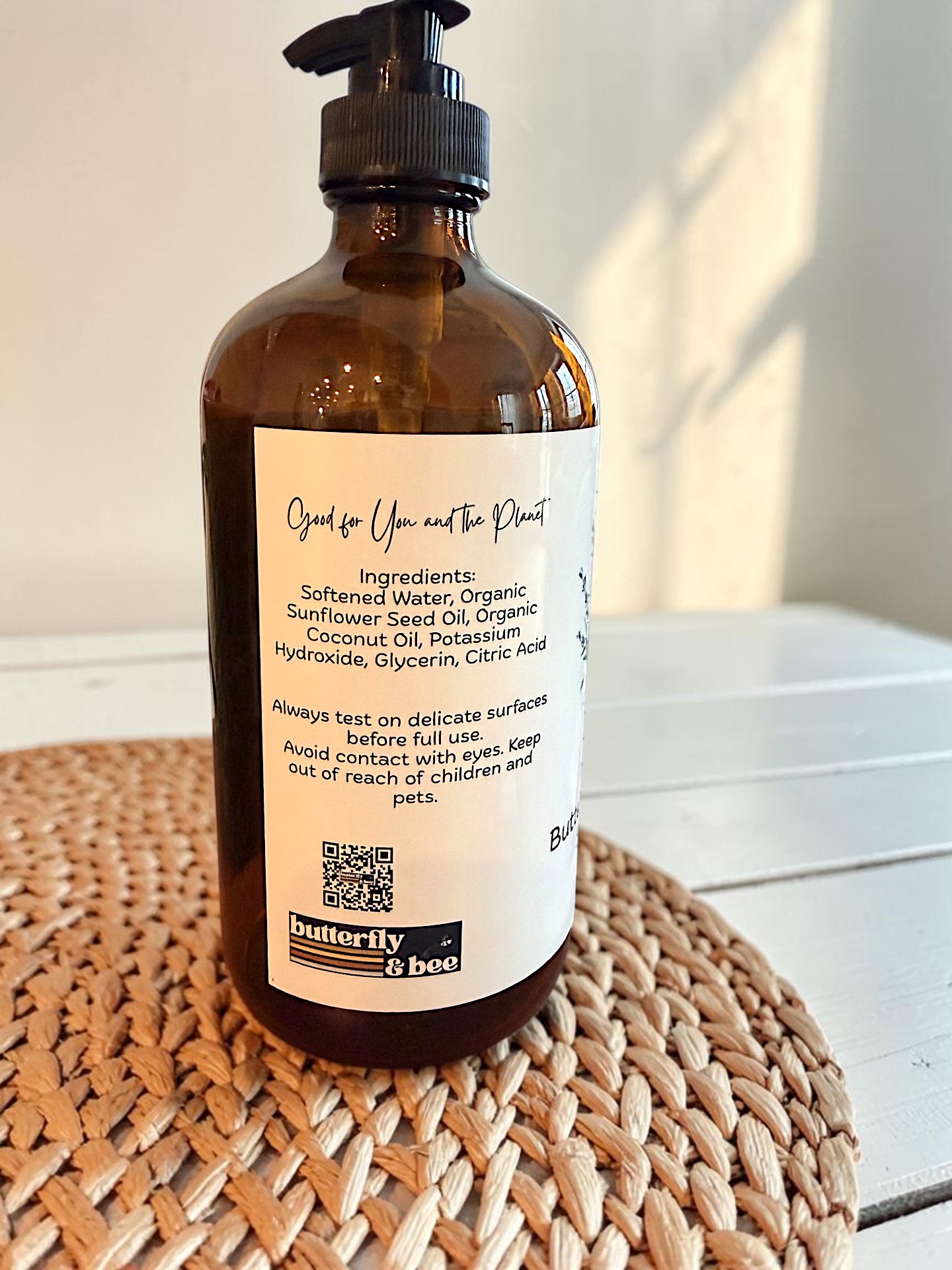Our Butterfly & Bee Plant-Based Castile Soap is a gentle yet powerful multi-purpose soap designed for refill living and low-waste homes. Use it throughout your home to create custom hand soaps, dish soaps, household cleaners, and more.