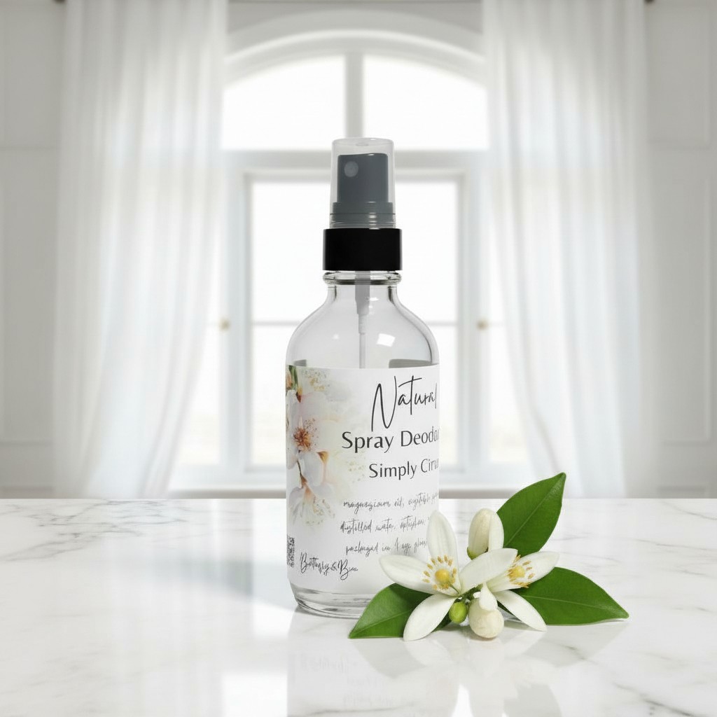Stay fresh with our Butterfly & Bee Natural Spray Deodorant made with simple ingredients. Aluminum-free deodorant spray for all-day odor protection without harsh chemicals. Packaged in zero-waste, recyclable glass bottles, this eco-friendly natural deodorant spray keeps you feeling clean and confident while caring for your body and the planet. This is the perfect sustainable deodorant for sensitive skin for both men and women