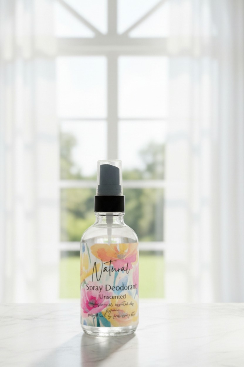 Packaged in a glass 4 oz. Spray Bottle, free from aluminum, parabens, and synthetic fragrances perfect for those seeking a clean, eco-friendly alternative.
