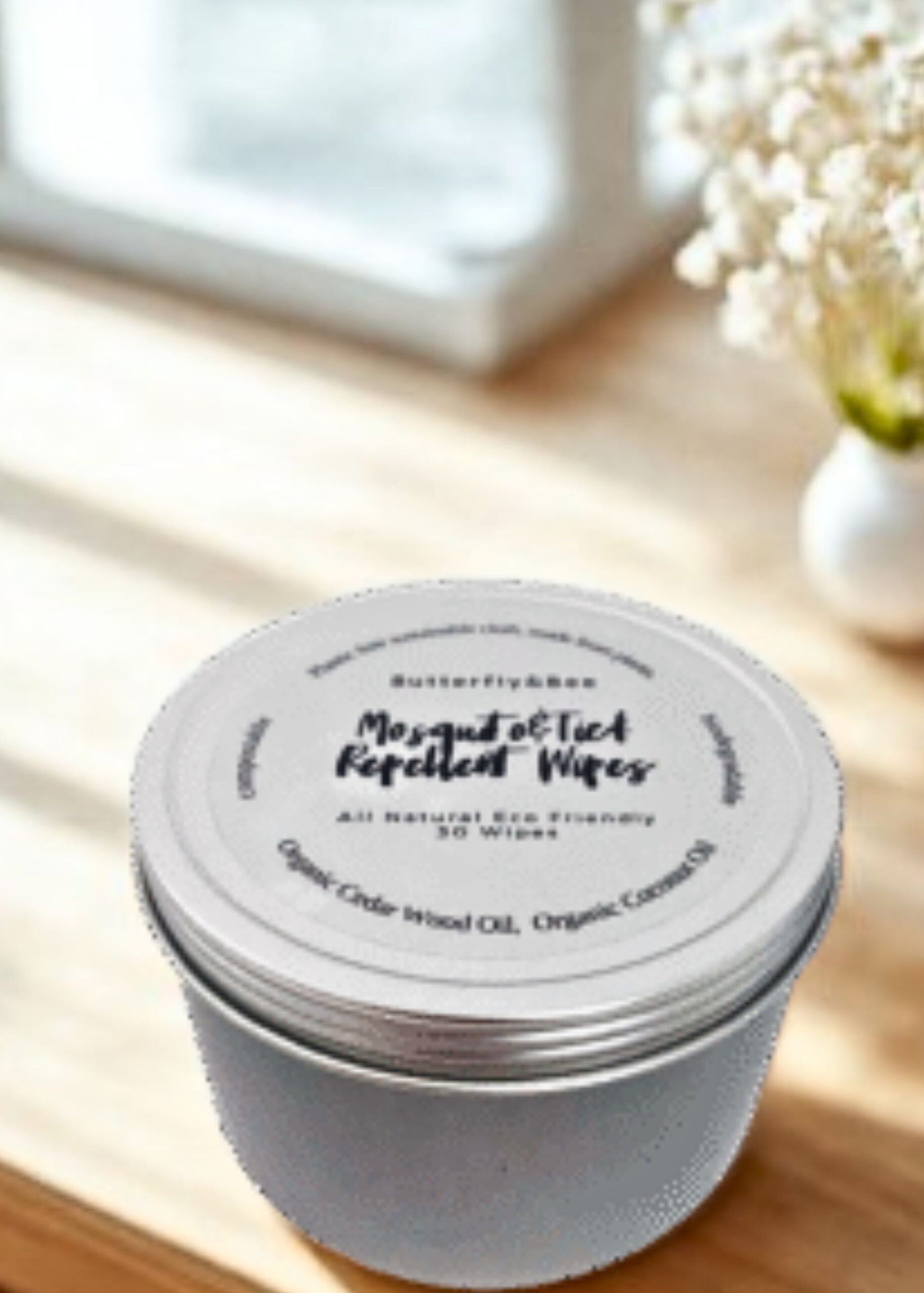 Stay protected wherever adventure takes you  from hiking trails to backyard barbecues. Our mess-free repellent wipes come in a sleek, reusable  container, each filled with30 wipes  infused with certified organic cedarwood and coconut essential oils. These proven plant-based ingredients naturally repel mosquitoes and ticks, so you can enjoy the outdoors without worry.