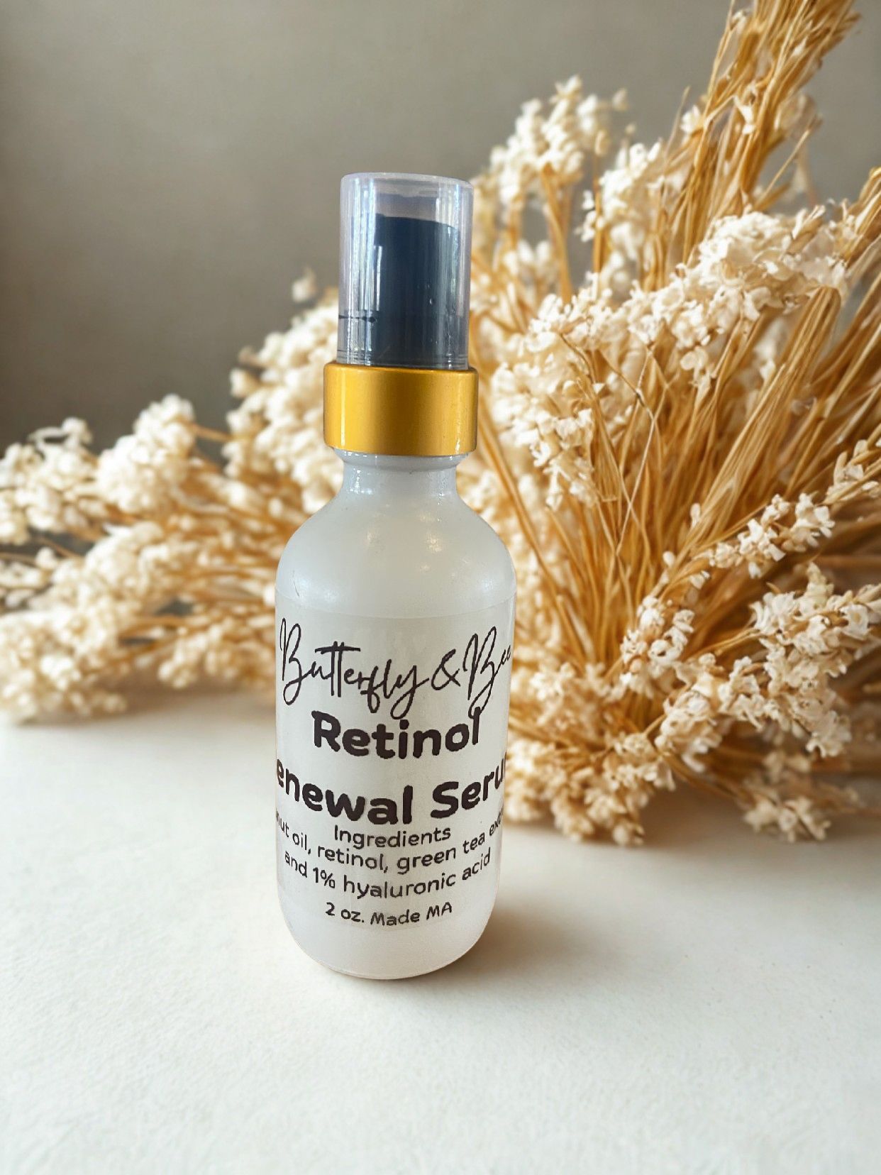 Our Retinol Renewal Serum ormula crafted to support your skin’s natural glow helping soften the look of fine lines, wrinkles, and uneven tone without harsh chemicals. Made with vegan, skin-loving ingredients like retinol, green tea extract, and 1% hyaluronic acid, it gently encourages cell renewal while delivering deep hydration.